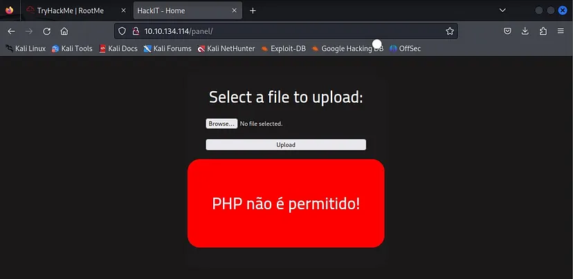 Upload failed!! This is because .php file is not allowed to be uploaded here. So we will try to bypass the upload by changing the file extension.