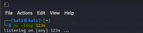Moving on to the next step, we will initiate a listener using Netcat. I am using 1234 port which was already inserted in the script that we uploaded.