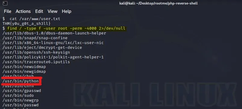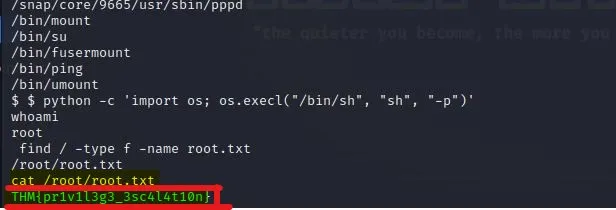 There we found the flag “THM{pr1v1l3g3_3sc4l4t10n}”.