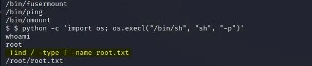 We need the command that has been highlighted above.We can skip the first command as the binary has already SUID permission.